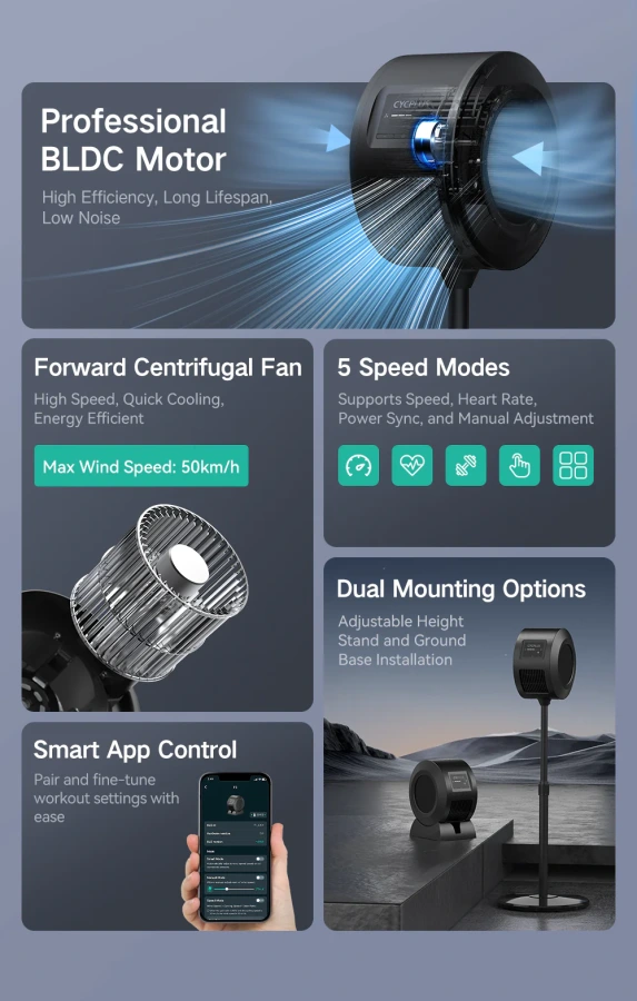Zaži realistickejší a komfortnejší indoor tréning s CYCPLUS F1, inteligentným ventilátorom navrhnutým špeciálne pre cyklistov. Ventilátor sa automaticky prispôsobuje tvojej záťaži, vďaka čomu poskytuje presný a prirodzený prúd vzduchu – presne vtedy, keď ho najviac potrebuješ.
