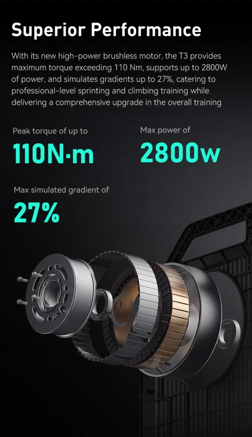 BLDC motor trenažéra T3 je vybavený inovatívnym chladením, ktoré obstaráva špeciálny medený plát inštalovaný v blízkosti motora. Pri testovaní bolo potvrdené, že takto dokonalý systém chladenia umožní trenažéru zvládnuť simuláciu 17% stúpania s odporom 48 Nm počas 60 minút. 14% stúpanie s odporom trenažéru 40 Nm môžete ísť pokojne celý deň.
