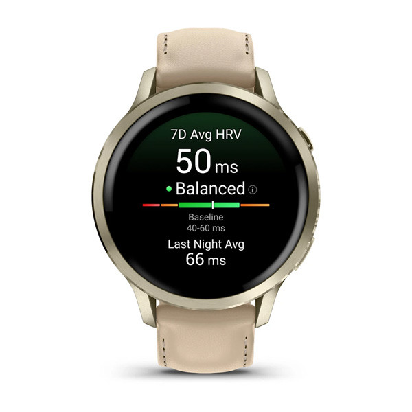 Garmin VENU 4 - 41mm, Beige/ Lunar Gold + Leather