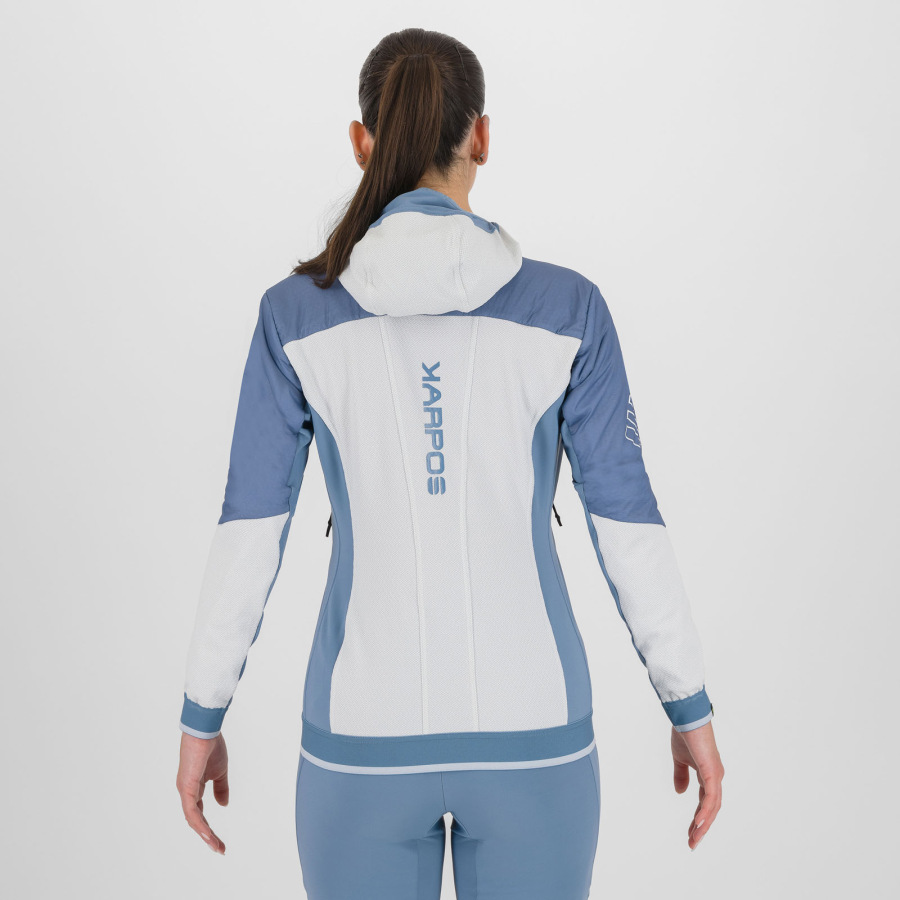 Dámska skialpová bunda Alagna Plus Evo je výsledkom dlhoročnej spolupráce Karpos-u a profesionálnych skialpinistov. Vďaka špeciálnej konštrukcii je vhodná nielen na skialpové výstupy alebo lyžovanie, ale aj ako zahrievacia bunda počas skialpových pretekov. Použité materiály a Polartec® Alpha® izolácia sú zárukou, výbornej hrejivosti, priedušnosti, ochrany v nepriaznivom počasí a spolu s úzkym strihom aj perfektného sedenia na tele. Nechýbajú vrecká na skialpové pásy, tvarovaná kapucňa a kvalitné YKK® zipsy.