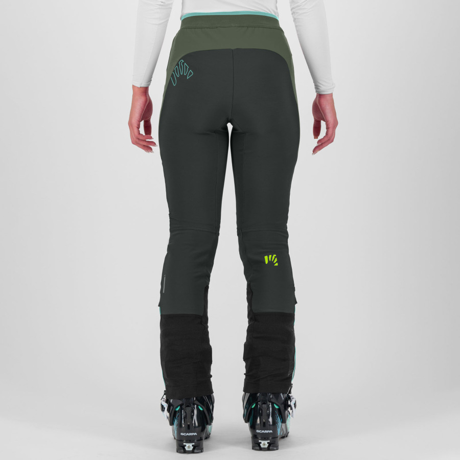 Dámske skialpové nohavice Karpos Alagna Plus Evo sú vďaka špeciálnej konštrukcii a použitým materiálom vhodné aj na iné športové a outdoorové aktivity (bežecké lyžovanie, zjazdové lyžovanie, turistika). Poskytujú výbornú údržbu tepla, optimálnu priedušnosť a ochranu pred vetrom a snehom. Dolná časť je vybavená krátkymi YKK® zipsami a odolnou Cordurou, ktorá chráni pred poškodením od mačiek a ostrých hrán lyží.