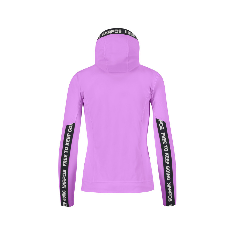 - Nápadité detaily v podobe elastickej pásky na kapucni a rukávoch s logom Karpos „Free to keep going“ dodávajú mikine štýlový športový charakter.