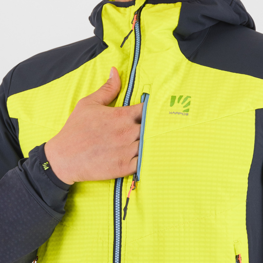 Turistická bunda Karpos Lede je ideálna na celodenné túry. Vďaka kombinácií funkčného materiálu K-Shell na prednej a zadnej strane je zabezpečená ochrana pred vetrom a optimálna údržba tepla. Na kapucni a rukávoch sa nachádza elastická tkanina poskytujúca odolnosť voči opotrebeniu a volnosť v pohybe. Vyššiu priedušnosť a komfort počas nosenia zvyšuje ľahká pružná tkanina na bokoch a v dolnej časti bundy.