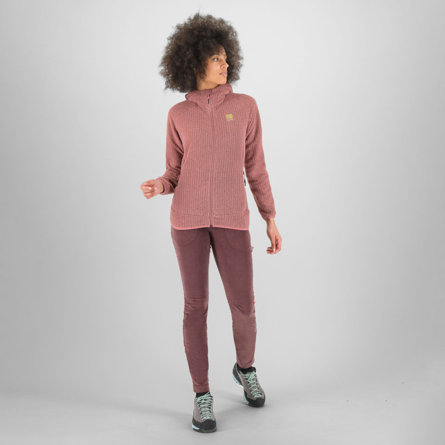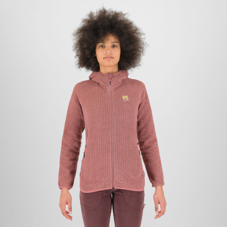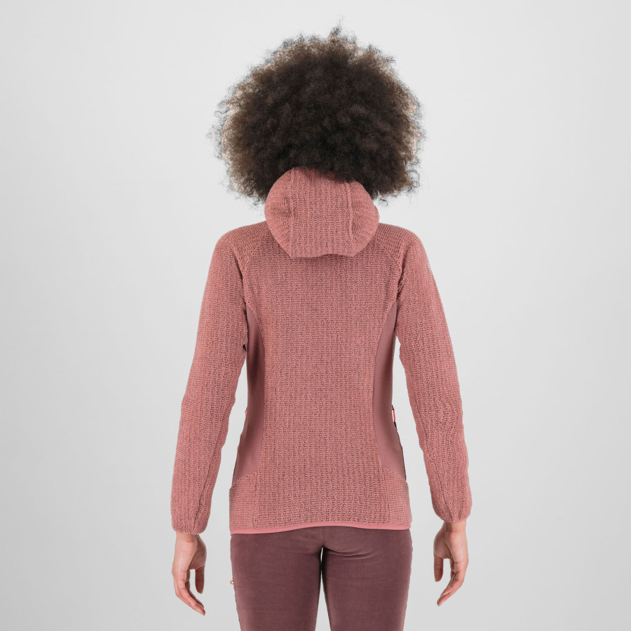 Outdoorová mikina s kapucňou Karpos Rocchetta Hoodie predstavuje dokonalé prepojenie dvoch typov Thermo Fleece tkanín, vďaka ktorým poskytuje optimálnu kombináciu tepelnej izolácie, odolnosti a komfortu. Ideálna druhá vrstva na turistiku, trekkingové výlety a ostatné horské aktivity v chladnom počasí.