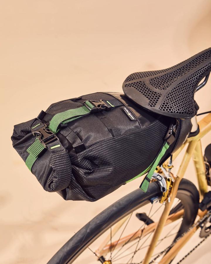 Vďaka kompaktným rozmerom a precíznej konštrukcii drží taška stabilne aj pri technickej jazde, ostáva tichá, nenápadná a vždy pripravená prispôsobiť sa tomu, čo so sebou práve vezieš. Je to riešenie pre tých, ktorí chcú výbavu rozložiť efektívne, jazdiť ľahko a mať istotu, že aj keď sa počasie zmení alebo sa deň predĺži, budú mať všetko potrebné poruke – suché, bezpečne uložené a bez obmedzení v jazde.