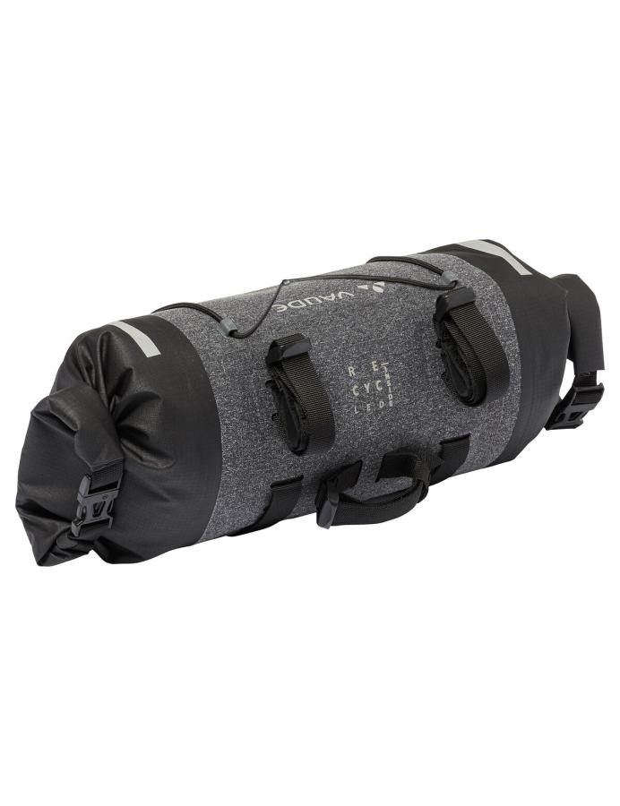 - Primárny materiál tašky na riadidlá je vyrobený z recyklovaného polyamidu, ktorý sa získava recykláciou z textilných materiálov, ako sú použité rybárske siete